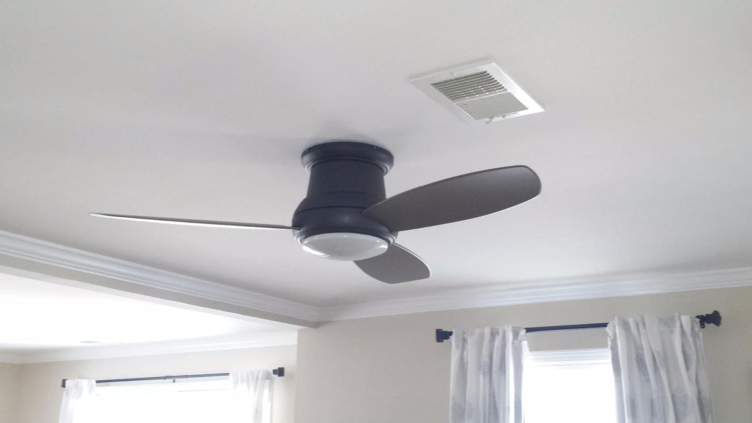 The concept ii flushmount led by minka aire requires 75% less time and labor to assemble than conventional ceiling fans.